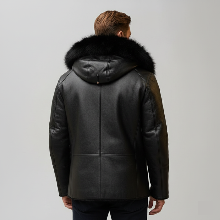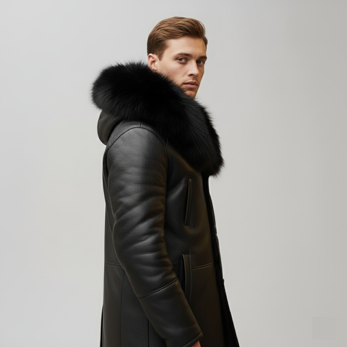Designed with premium attention to detail, this coat features a fox‑fur‑trimmed collar, wide lapels, and secure front closure, ensuring maximum warmth and comfort. The luxurious fur accents elevate the look while the rich shearling interior guarantees cozy insulation from head to knees. Whether paired with tailored trousers or casual denim, Cody’s Shearling Trench Coat merges refined fashion with functional comfort — ideal for both city streets and winter travels.