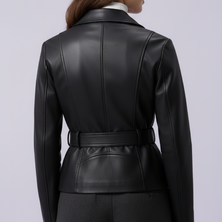 EMMILAĀ is the ultimate modern, edgy biker blazer jacket you’ve been searching for. Crafted from luxurious lamb leather, it features multiple front zippers that enhance the flair at the hem. Additional details include a half zipper front closure, side pockets, a removable waist belt, and zippered sleeves. The EMMILA jacket is the perfect statement piece to effortlessly elevate your style and confidence.