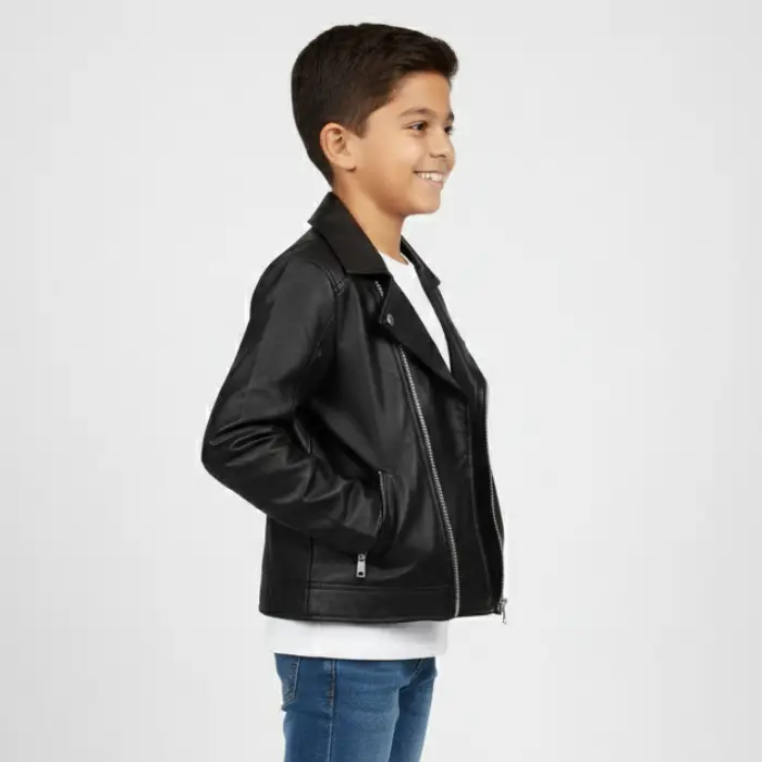 - Girls Kids Cross Zip Jacket Biker Style Made From Soft Supple Real Leather
