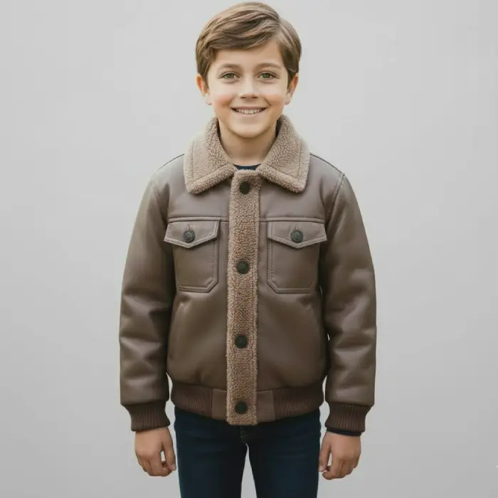 Handmade Boys Kids Shearling Leather Jacket | Real Leather Warm Winter Outerwear