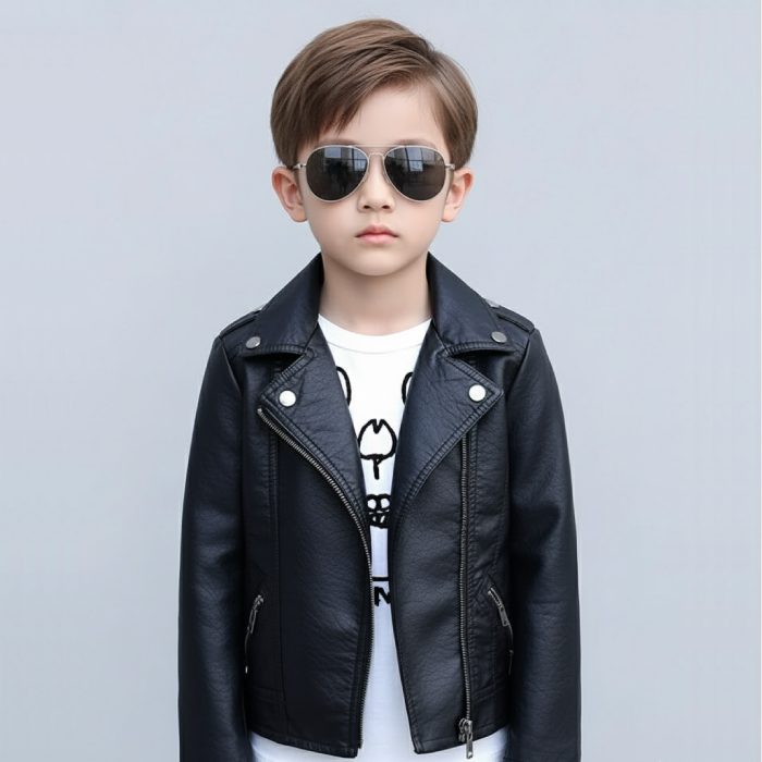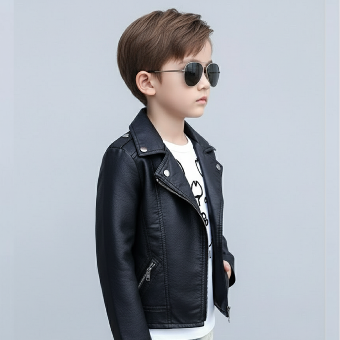 Kids Black Biker Leather Jacket – Classic Moto Style