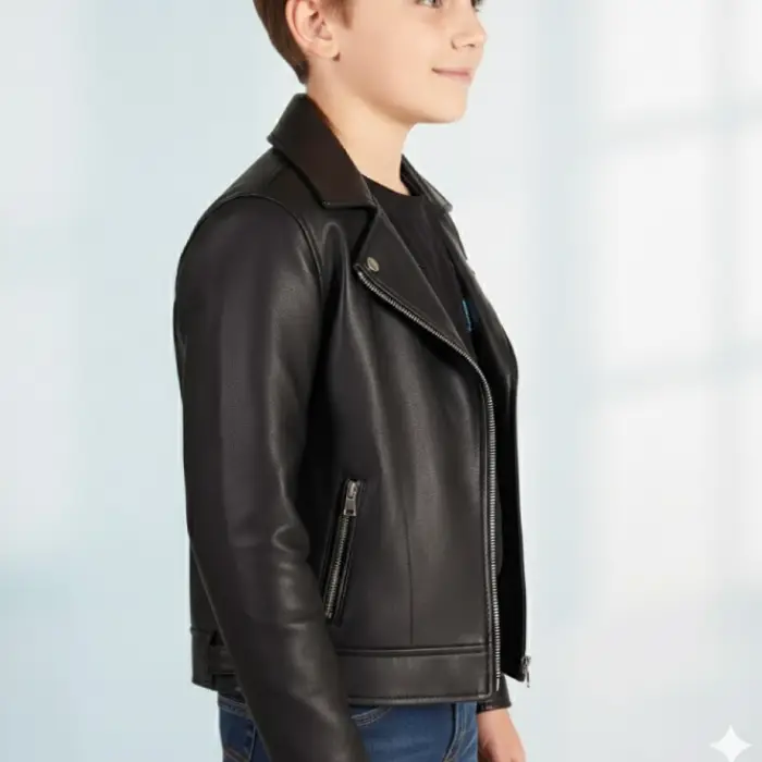 The Kids Black Moto Leather Biker Jacket from Leather Jackets Canada is designed for young trendsetters who love bold and stylish outerwear. Inspired by classic motorcycle fashion, this jacket features a sleek biker silhouette that brings confidence and personality to any outfit. The timeless black finish ensures versatile styling, making it perfect for school, weekend outings, and casual wear.