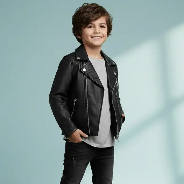 Whether worn for everyday adventures, family outings, or winter styling, this leather jacket delivers a classic moto aesthetic while remaining comfortable and practical for children.