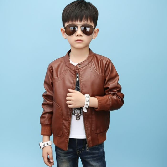 Kids Brown Winter Leather Jacket – Stylish & Warm Outerwear