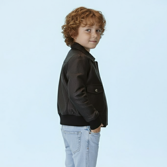 Kids Pebbled Leather Bomber Jacket – Stylish & Durable Outerwear