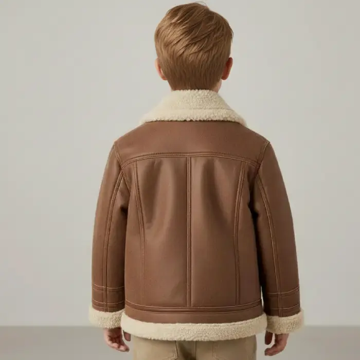 Kids Shearling Brown Leather Jacket | Real Leather Handmade Winter Wear