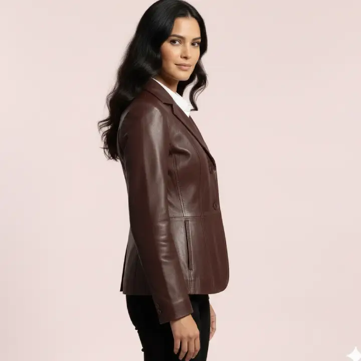 Women’s Angela Mid Brown Sheepskin Leather Jacket – Classic Style