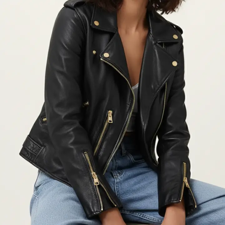 Discover the Balfern Leather Biker Jacket — a timeless women’s leather jacket at Leather Jackets Canada that blends classic moto attitude with everyday versatility. Crafted from buttery‑soft premium sheep leather, this jacket moulds to your shape over time for a personalized, premium feel. Featuring a belted waist for an adjustable fit and bold metal hardware accents, the Balfern enhances any outfit — from casual denim to sleek dresses. Designed with practical three zip pockets, epaulette shoulder detail, zip cuffs, and a fully recycled polyester lining, it’s both functional and stylish. Whether worn day or night, this iconic biker jacket adds effortless edge to your wardrobe.