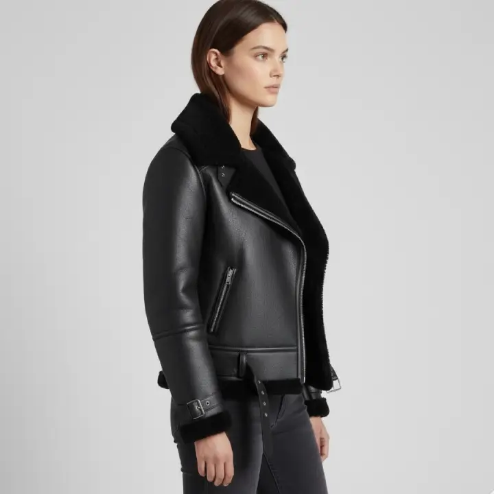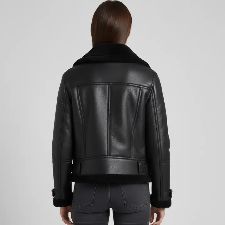 Women’s Black Shearling Fur Aviator Leather Jacket
